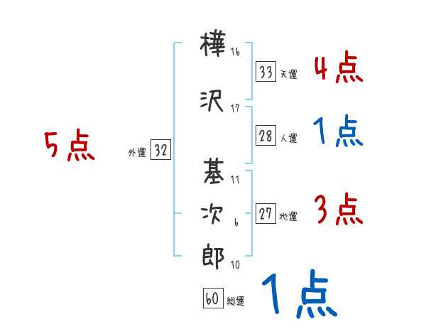 樺沢基次郎さんの画数の鑑定結果