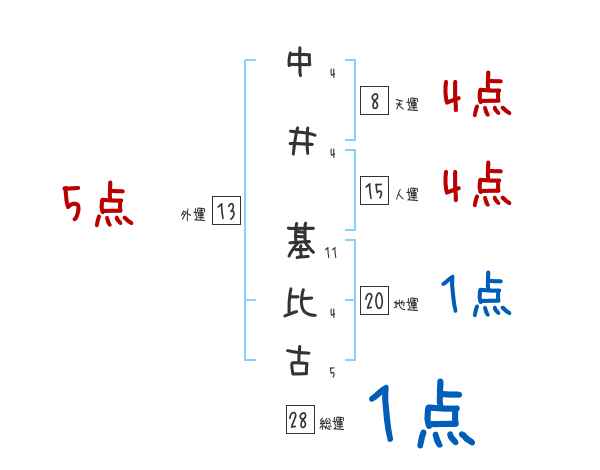 天運![]() | 中井基比古さんの天運は8画の4つ星!勤勉家。根気強く努力し成功する。忍耐力がある。 家系が持つ宿命的な運勢を表します。祖先から受け継いだ苗字ですので自分の力が及びません。家柄を象徴します。 |