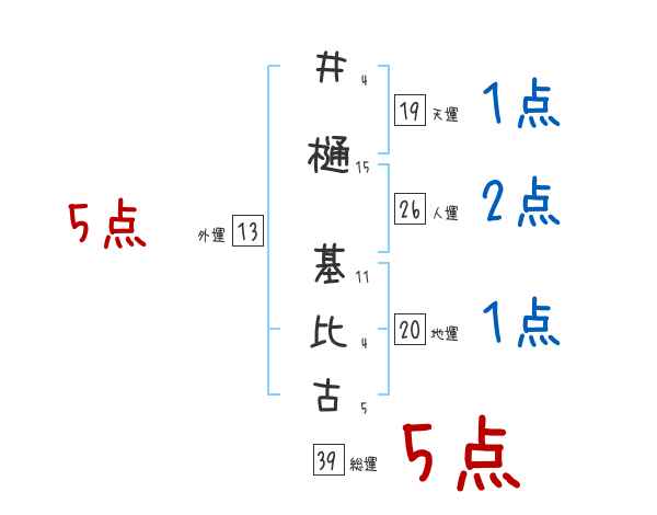 総運![]() | 井樋基比古さんの総運は39画の5つ星!社交性に優れ人望が厚い。人の上に立ち成功する。 あなたの人生を表す1番重要な運勢です。生涯を通じて影響する総合運となり、主に50歳以降の晩年期に影響を及ぼします。 |