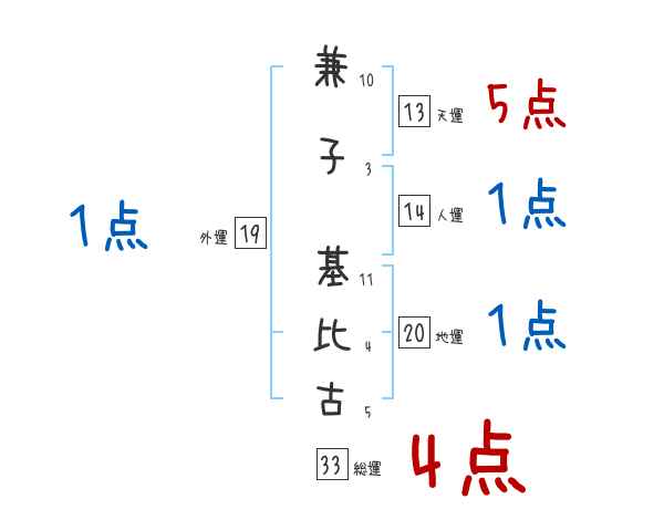 外運![]() | 兼子基比古さんの外運は19画の1つ星!優れた才能を持ちますが、協調性が足りないことも。周りの人と協力する事を意識しましょう。 生活面を象徴する運勢です。外部から受ける影響力を表し、結婚運、家庭運や職場、環境への順応性を表します。 |