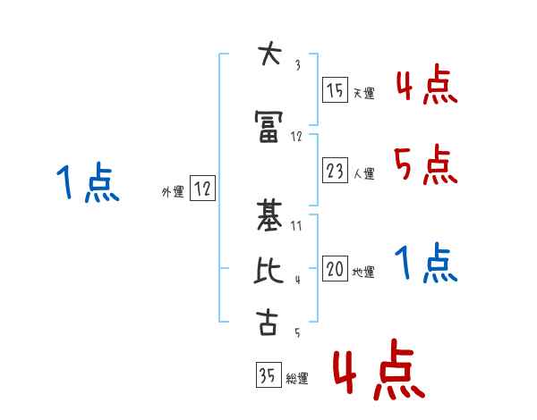 天運![]() | 大冨基比古さんの天運は15画の4つ星!人徳があり出世する。順調に物事を進め円満な人生。 家系が持つ宿命的な運勢を表します。祖先から受け継いだ苗字ですので自分の力が及びません。家柄を象徴します。 |