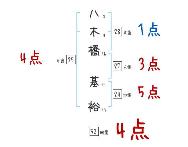 八木橋基裕さんの画数の鑑定結果