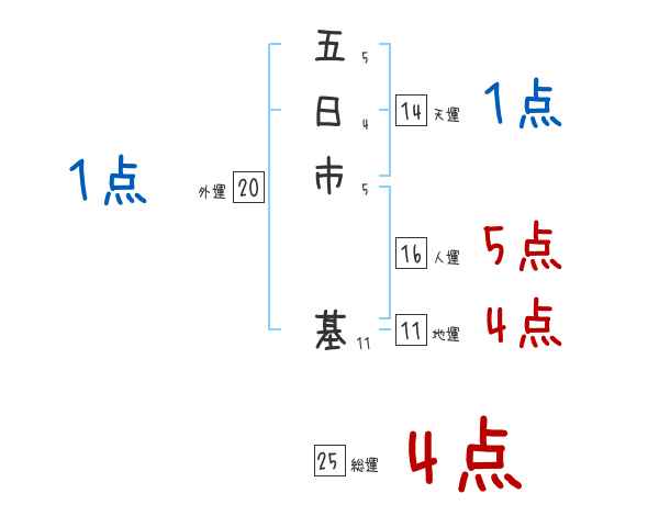 人運![]() | 五日市基さんの人運は16画の5つ星!人望が厚く大きく発展する。逆転成功が見える。 性格や才能などを表す2番目に重要な運勢です。人間関係や協調性、社会的な成功に影響します。主に20歳から50歳ぐらいまでの中年期の運勢を表します。 |