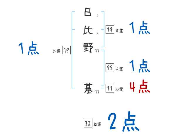 日比野基さんの画数の鑑定結果