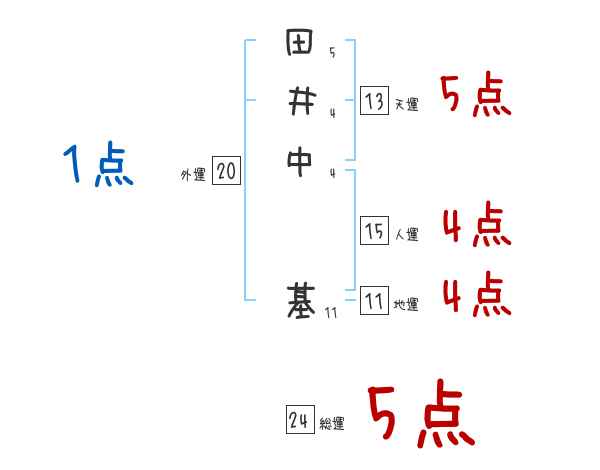 天運![]() | 田井中基さんの天運は13画の5つ星!才能に恵まれ人気がある。名声を手に入れる。円満な人生。 家系が持つ宿命的な運勢を表します。祖先から受け継いだ苗字ですので自分の力が及びません。家柄を象徴します。 |