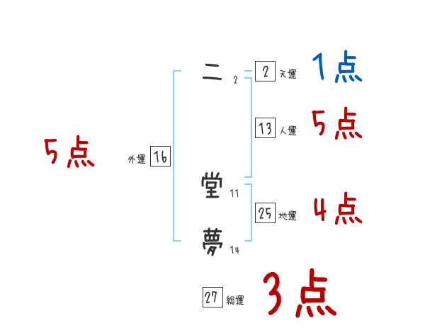 二堂夢さんの画数の鑑定結果