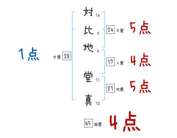 対比地堂真さんの画数の鑑定結果