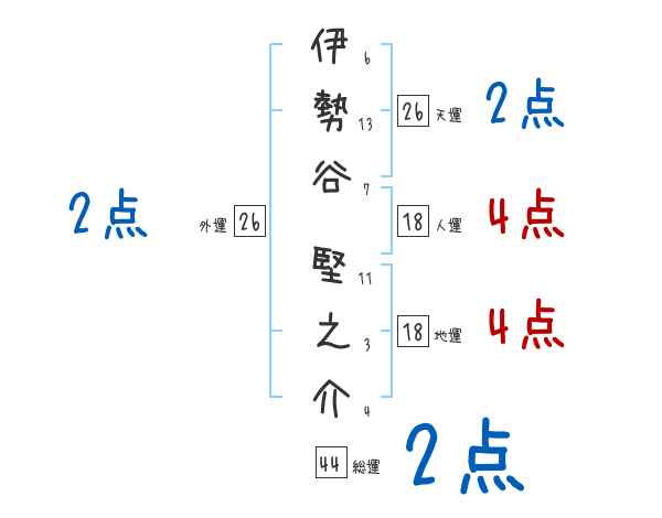 伊勢谷堅之介さんの外運は26画の2つ星