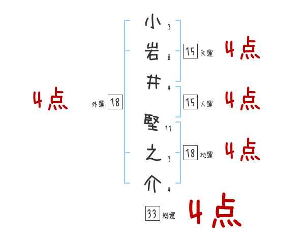 小岩井堅之介さんの画数の鑑定結果