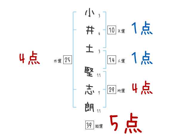 小井土堅志朗さんの画数の鑑定結果