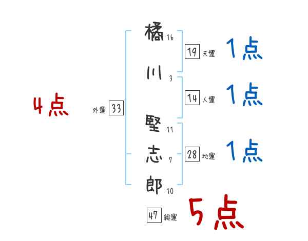 橘川堅志郎さんの画数の鑑定結果