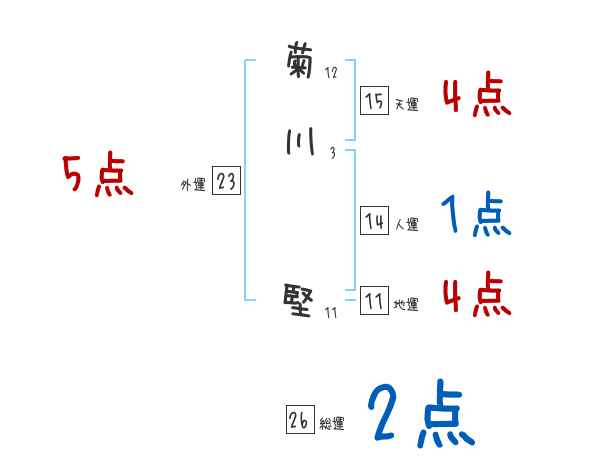 菊川堅さんの画数の鑑定結果