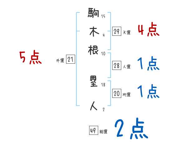 駒木根塁人さんの画数の鑑定結果