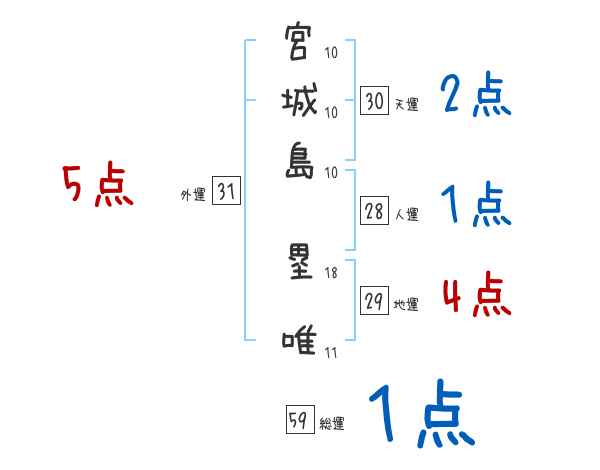 宮城島塁唯さんの画数の鑑定結果
