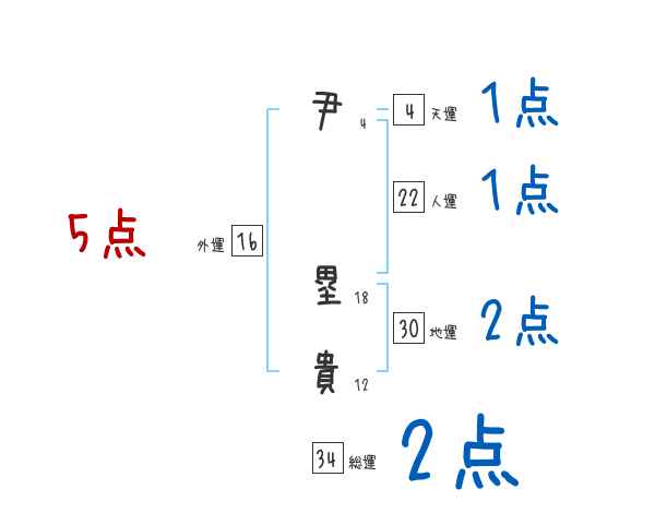 外運![]() | 尹塁貴さんの外運は16画の5つ星!人望が厚く大きく発展する。逆転成功が見える。 生活面を象徴する運勢です。外部から受ける影響力を表し、結婚運、家庭運や職場、環境への順応性を表します。 |