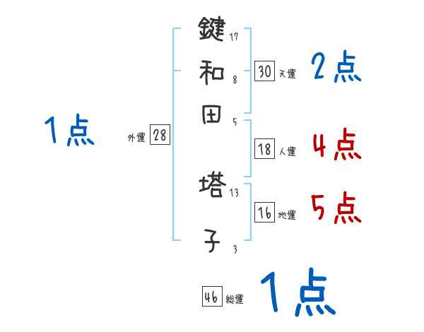 鍵和田塔子さんの画数の鑑定結果