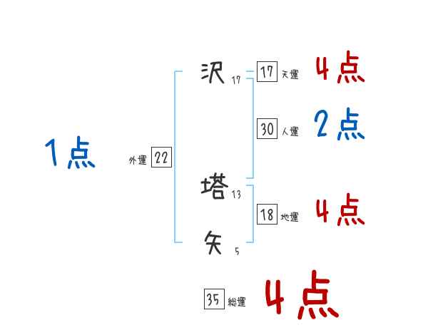外運![]() | 沢塔矢さんの外運は22画の1つ星!努力することが苦手ないっぽう手先が器用。芸術性にも優れる。 生活面を象徴する運勢です。外部から受ける影響力を表し、結婚運、家庭運や職場、環境への順応性を表します。 |