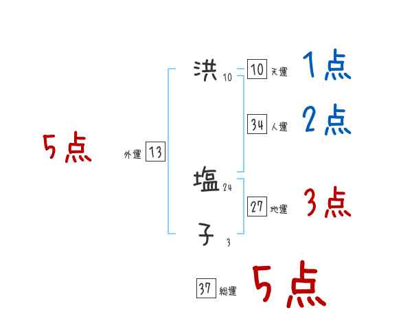 洪塩子さんの画数の鑑定結果