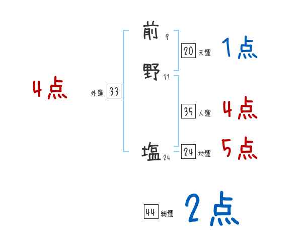 前野塩さんの画数の鑑定結果