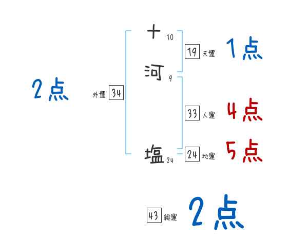 天運![]() | 十河塩さんの天運は19画の1つ星!優れた才能を持ちますが、協調性が足りないことも。周りの人と協力する事を意識しましょう。 家系が持つ宿命的な運勢を表します。祖先から受け継いだ苗字ですので自分の力が及びません。家柄を象徴します。 |