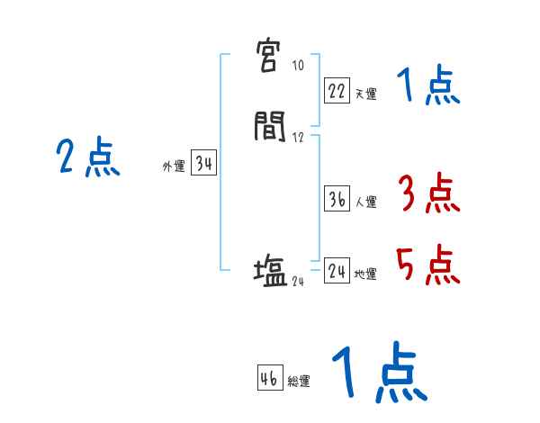 宮間塩さんの画数の鑑定結果