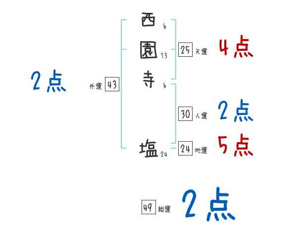西園寺塩さんの画数の鑑定結果