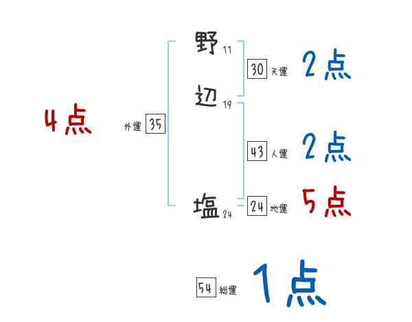 野辺塩さんの画数の鑑定結果