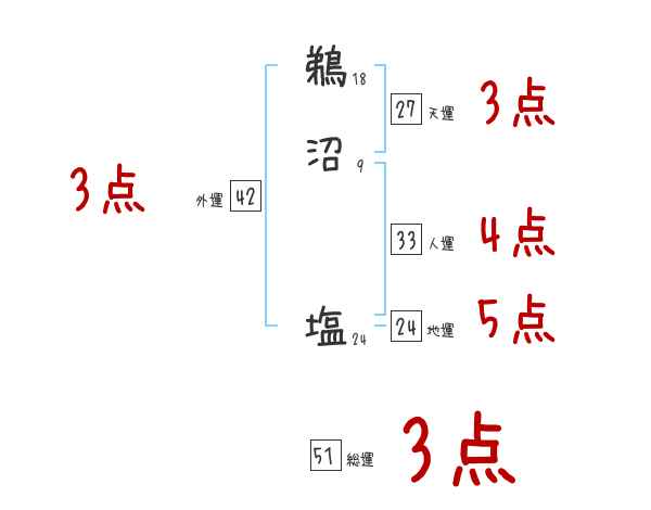 鵜沼塩さんの画数の鑑定結果