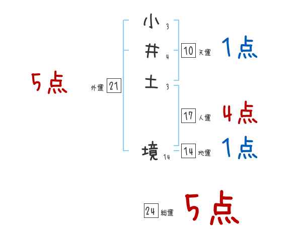 小井土境さんの画数の鑑定結果
