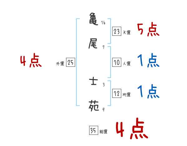 亀尾士苑さんの画数の鑑定結果