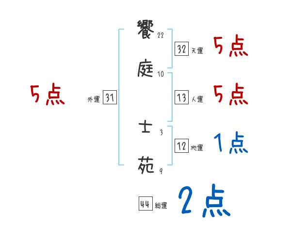 饗庭士苑さんの画数の鑑定結果