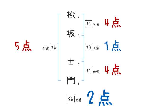 松坂士門さんの画数の鑑定結果