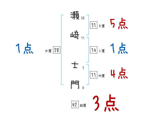 瀬﨑士門さんの画数の鑑定結果