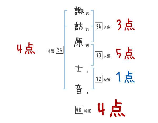 諏訪原士音さんの画数の鑑定結果