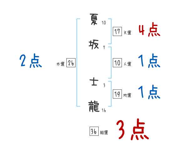 夏坂士龍さんの画数の鑑定結果