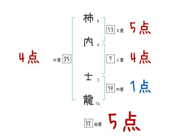 柿内士龍さんの画数の鑑定結果