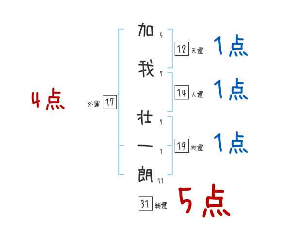 加我壮一朗さんの画数の鑑定結果