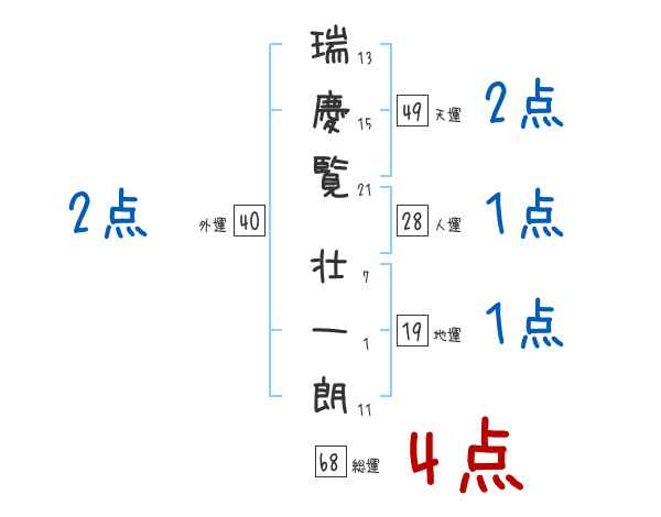 瑞慶覧壮一朗さんの画数の鑑定結果