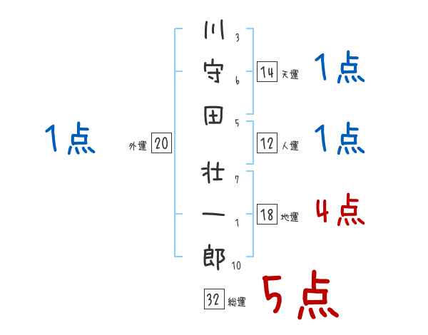 総運![]() | 川守田壮一郎さんの総運は32画の5つ星!柔軟性があり成功する。チャンスが多く金運が良い。 あなたの人生を表す1番重要な運勢です。生涯を通じて影響する総合運となり、主に50歳以降の晩年期に影響を及ぼします。 |