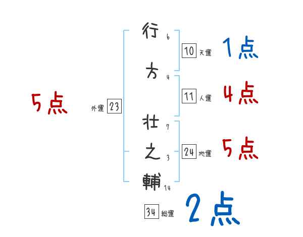 天運![]() | 行方壮之輔さんの天運は10画の1つ星!不安を感じやすい傾向。ストレスを抱えないように注意しましょう。 家系が持つ宿命的な運勢を表します。祖先から受け継いだ苗字ですので自分の力が及びません。家柄を象徴します。 |