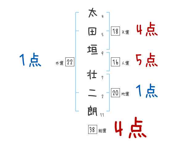 太田垣壮二朗さんの画数の鑑定結果