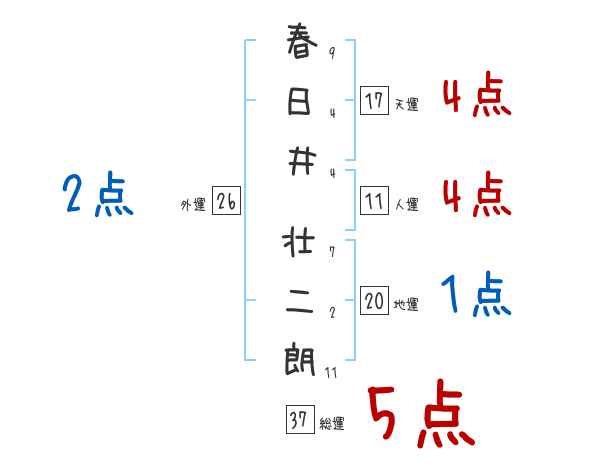 春日井壮二朗さんの画数の鑑定結果