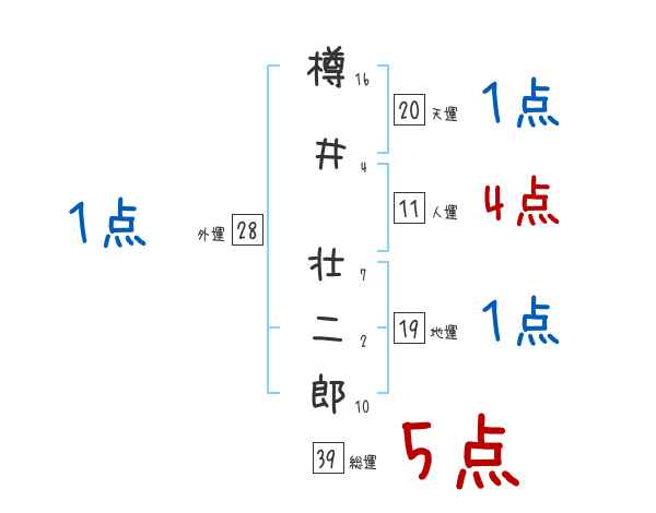 総運![]() | 樽井壮二郎さんの総運は39画の5つ星!社交性に優れ人望が厚い。人の上に立ち成功する。 あなたの人生を表す1番重要な運勢です。生涯を通じて影響する総合運となり、主に50歳以降の晩年期に影響を及ぼします。 |