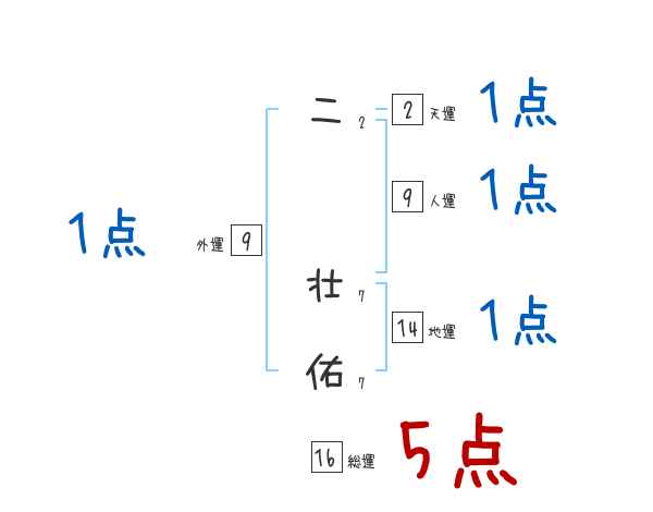 二壮佑さんの画数の鑑定結果