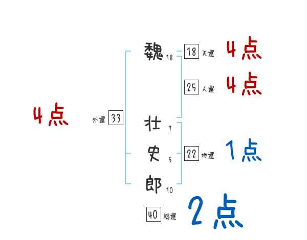 魏壮史郎さんの画数の鑑定結果