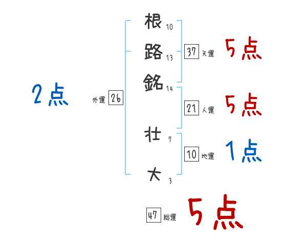 根路銘壮大さんの画数の鑑定結果