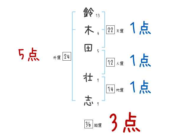 鈴木田壮志さんの画数の鑑定結果