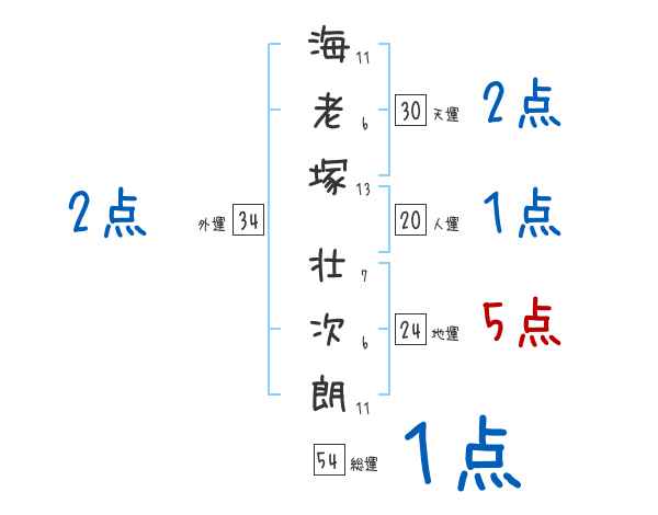 天運![]() | 海老塚壮次朗さんの天運は30画の2つ星!浮き沈みの激しさに注意しましょう。 家系が持つ宿命的な運勢を表します。祖先から受け継いだ苗字ですので自分の力が及びません。家柄を象徴します。 |