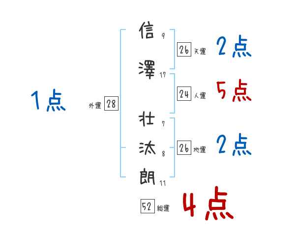 信澤壮汰朗さんの画数の鑑定結果