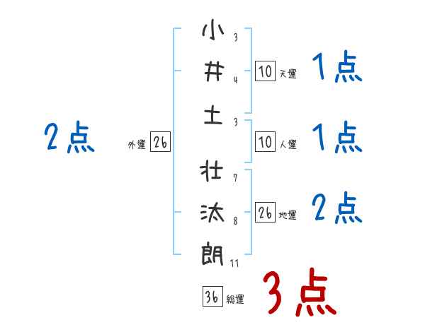 総運![]() | 小井土壮汰朗さんの総運は36画の3つ星!先見性が豊かです。多少神経質で苦労することも。 あなたの人生を表す1番重要な運勢です。生涯を通じて影響する総合運となり、主に50歳以降の晩年期に影響を及ぼします。 |